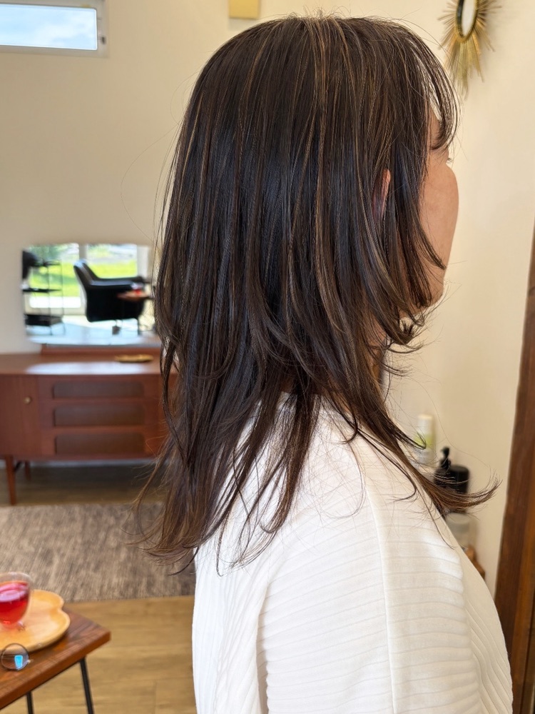 白髪も気になるけど白髪染めはまだしなくていいという方にはハイライトをして白髪と馴染むようにデザインをしてあげると自然な感じになります!