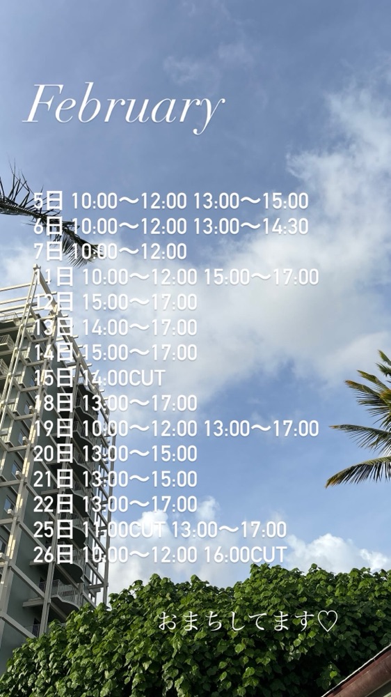 二月のご予約空き状況です