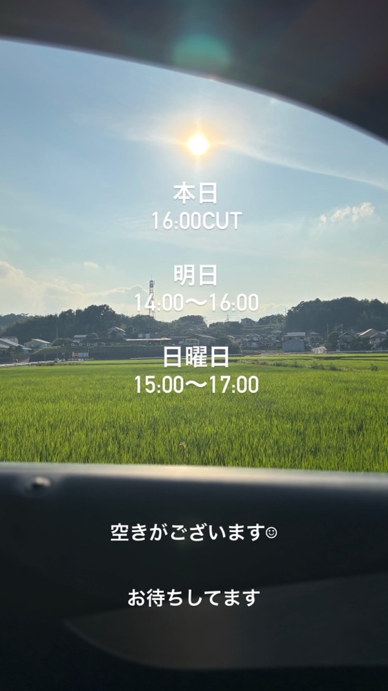 明日日曜日10:00cut枠、空きがございます。お待ちしております♡